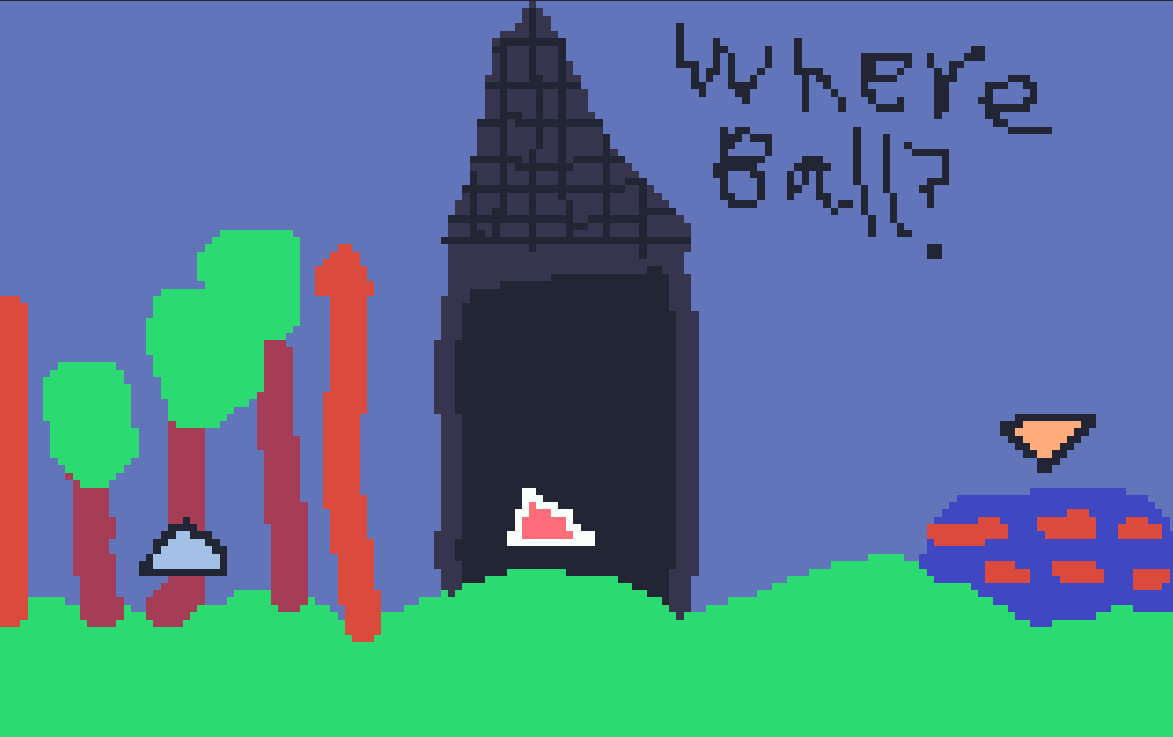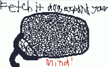 You are dog. Click on an arrow to go to different places. Find the ball. Expand your mind. But without ball, what are you?